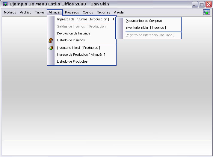Incluye las clases del MenuOffice 2003, Clases del ToolTipText Multilínea, Skin 1.0 y Ejemplo de cómo aplicarlo .